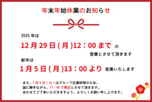 年末年始休業のお知らせ