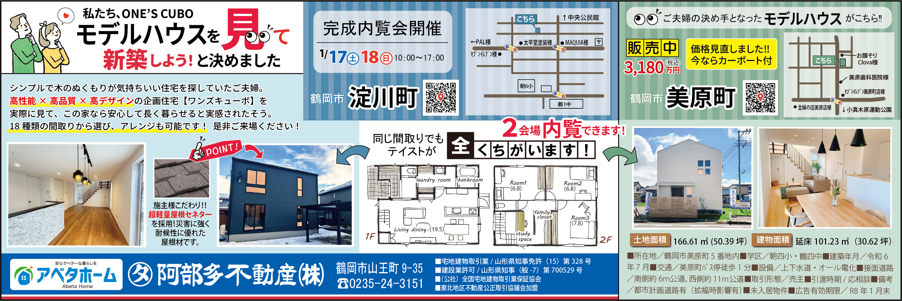 今回はアベタホームのおススメする、高性能住宅【ワンズキューボ】2棟同時内覧会開催です。