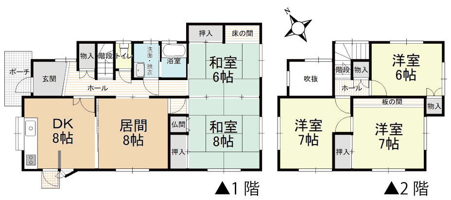 DK8畳 1階 L8畳 1階 和室8畳 1階 和室6畳 1階 洋室7畳 1階 洋室7畳 1階 洋室6畳 1階 +カーポート |