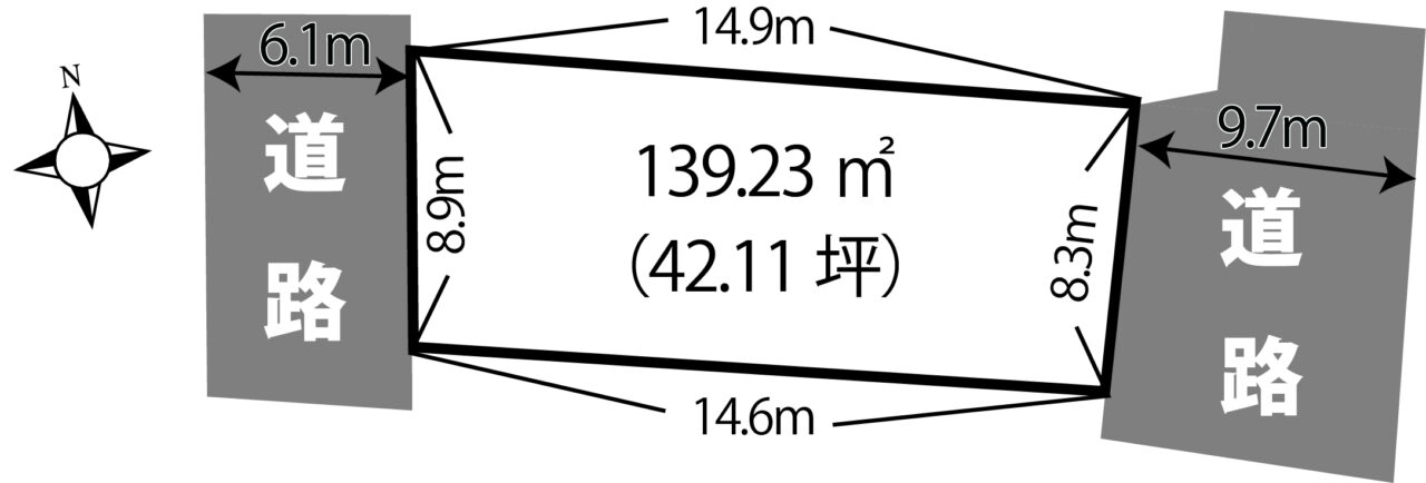 | 接道方向1 | 北西 | 接道間口1 | 8.9m |